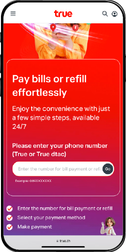 - True | dtac is not involved in the production, provision, sale, import, delivery of goods, or services. Therefore, True | dtac is not responsible for any loss, damage, deterioration, defects, or any other incidents that may occur with such products or services. In case of any damage or defects, please contact the participating store directly.