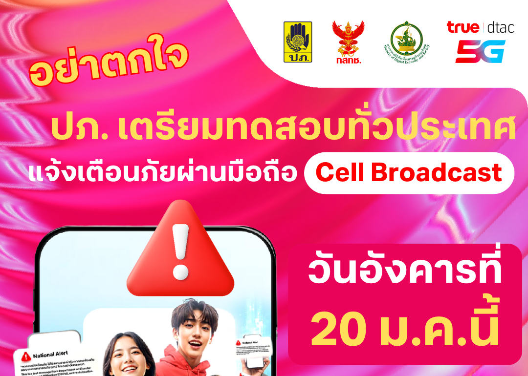 20 มกราคม แค่ทดสอบ อย่าตกใจ!! ทรู พร้อมร่วม ปภ.แจ้งเตือนภัย ผ่านระบบ Cell Broadcast ทั่วประเทศ