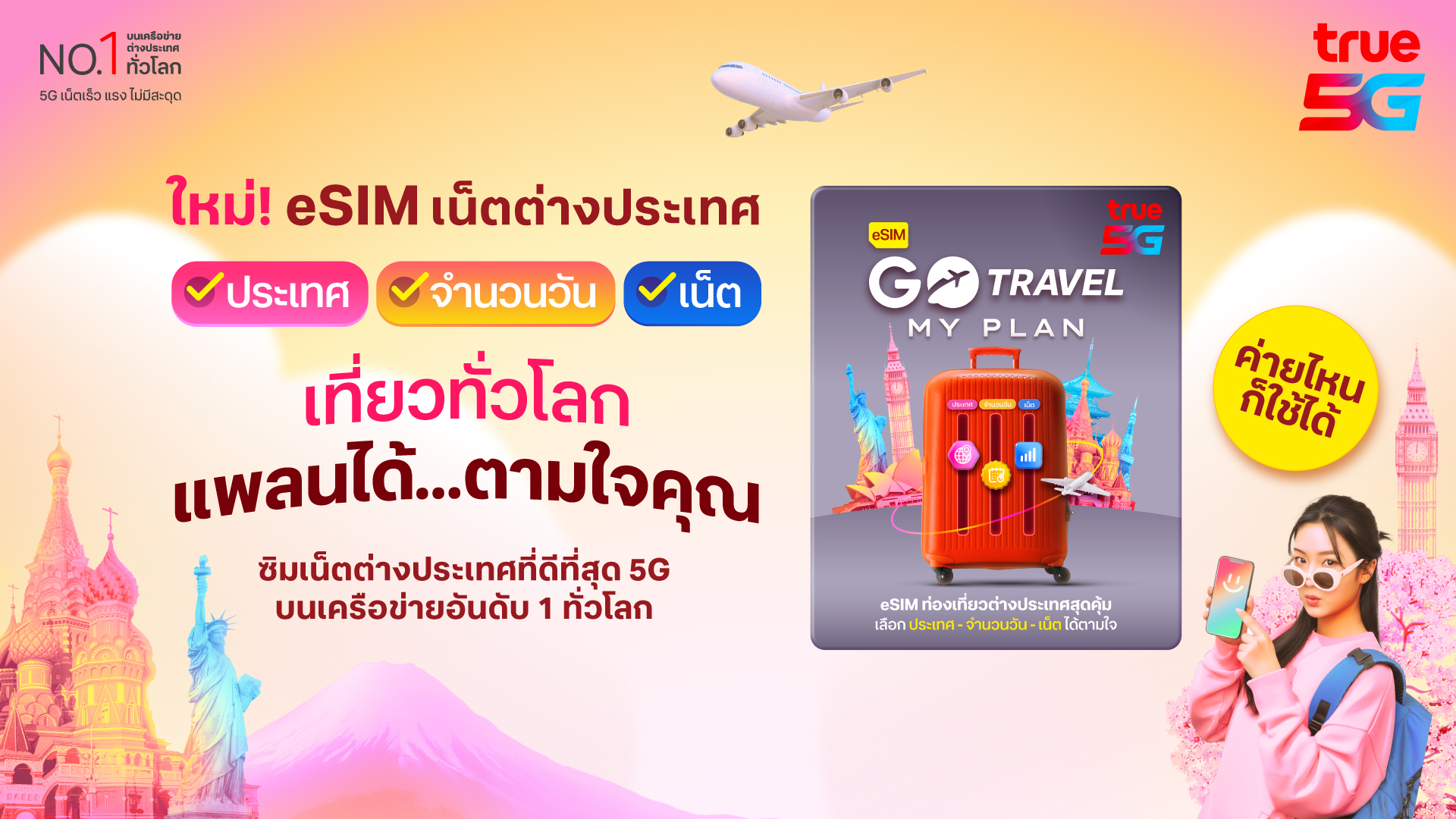 ว้าวได้ทุกทริป! ทรูพลิกโฉมโรมมิ่งด้วย “GO Travel MyPlan” eSIM เลือกประเทศ ปริมาณเน็ต และวันได้เองตามใจ ใครก็ใช้ได้ ไม่ต้องเปลี่ยนซิม! แถมฟรีประกันเดินทางและสิทธิพิเศษเพียบ!