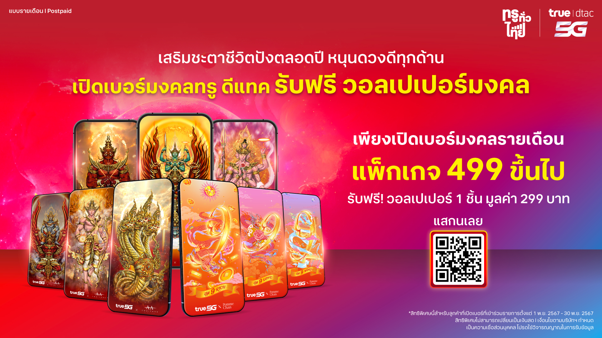 ปัง ..ปัง.. ปัง กับวอลเปเปอร์มงคล … ทรู ดีแทค เอาใจสายมู จัดคอลแลปส์ 2 อาจารย์ดัง อ.ลักษณ์ และ อ.ช้าง กับศิลปินนักวาดภาพชื่อดัง มอบวอลเปเปอร์มงคลมูลค่า 299 บาท ฟรี!เมื่อเปิดเบอร์มงคลใหม่รายเดือน แพ็กเกจ 499 บาทขึ้นไป