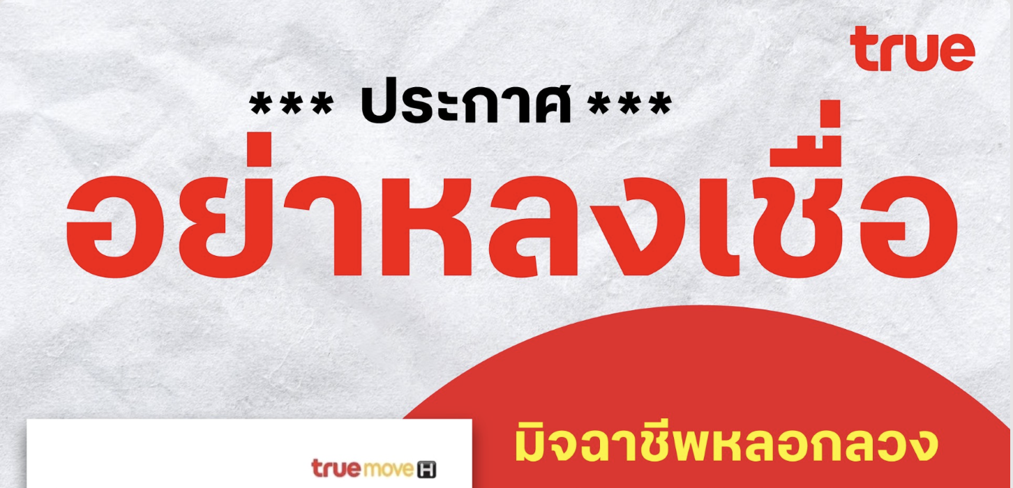 ทรู แจ้งเตือน มิจฉาชีพส่งจดหมายอ้างชื่อและโลโก้ แจ้งว่ากระทำผิด เพื่อหลอกให้ประสานตรงตำรวจ ขอประชาชนอย่าหลงเชื่อ