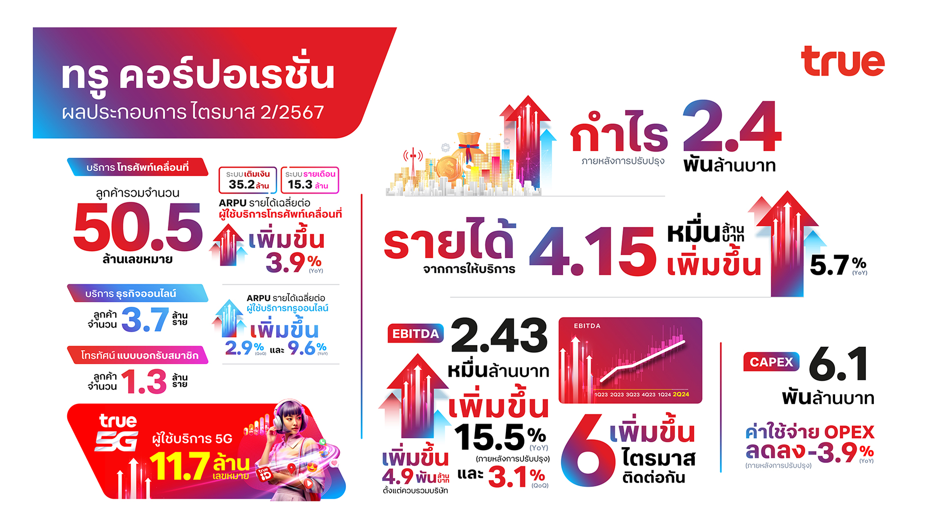 Sustained Profitability for True Corporation with THB 2.4 Billion Normalized Profit in Q224 Driven by 6th Consecutive Quarter of EBITDA Growth, Evolving as Thailand’s Leading Telecom-Tech Company