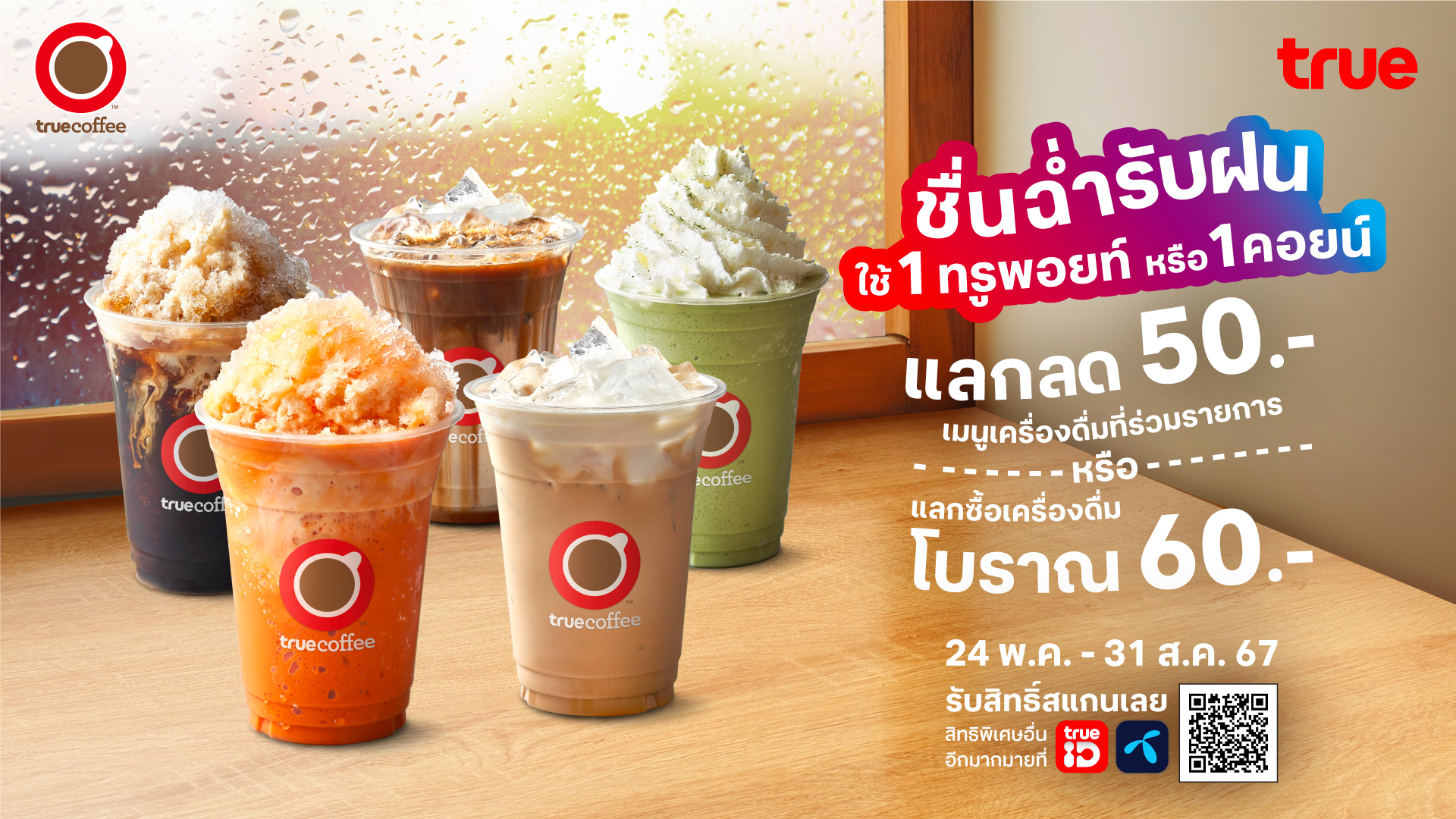 Cool Down with Your Favorite Drink! True and dtac Customers Redeem 1 Point for Discounts on Iced, Blended, and Boran Series Beverages at True Coffee until August 31 via TrueID and dtac Apps.