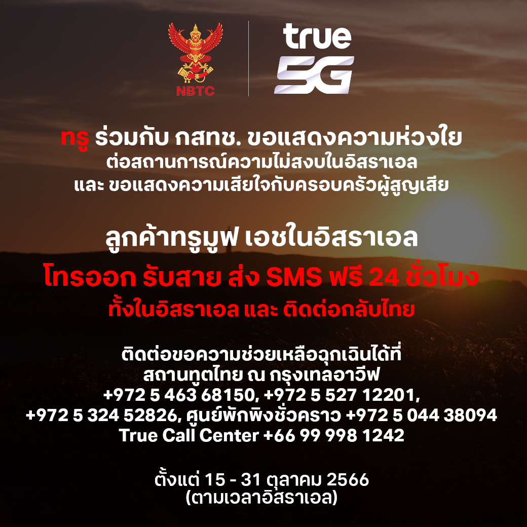 True Corp Elevates its Mission to Support a Full-Fledged Communication Service, Allowing TrueMove H and dtac Customers in Israel to Make Free Calls & SMS Both Domestically in Israel and Internationally to Their Families in Thailand