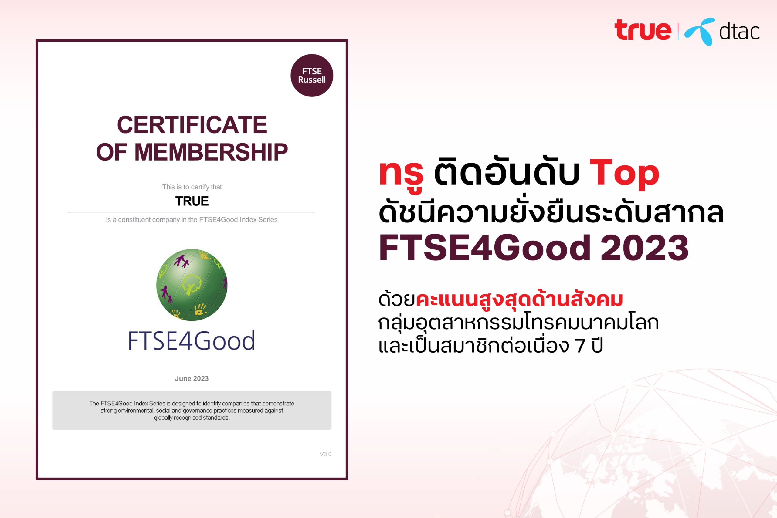 “World-Class FTSE4GOOD Sustainability Index”, Another Proof of True Corp’s Commitment to Conduct Business Sustainably