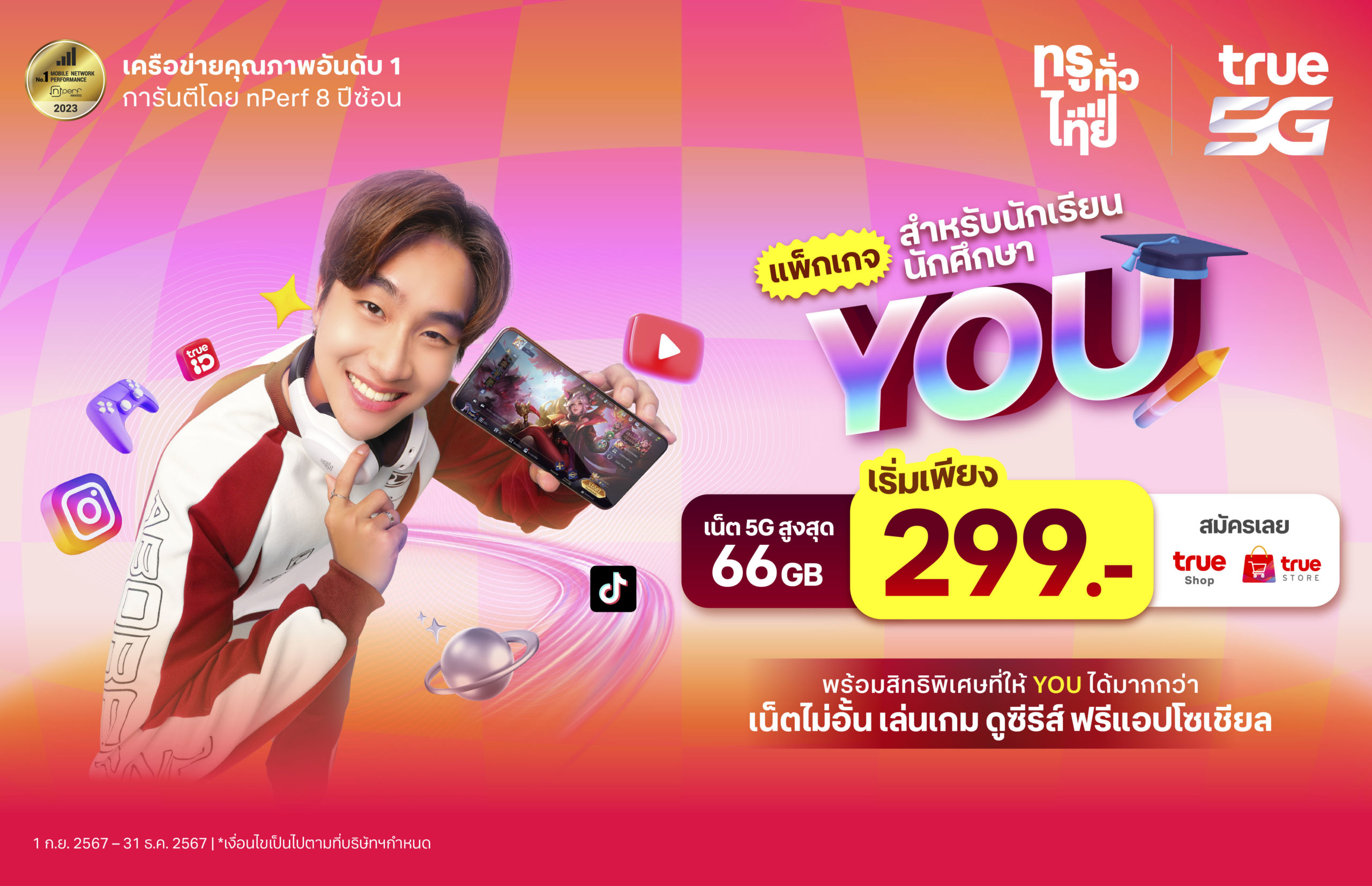 พิเศษ แพ็กเกจ YOU เอาใจ Gen Z ! ใช้รายเดือน เริ่มต้นเพียง 299 บาท รับเน็ต 5G สูงสุด 66GB