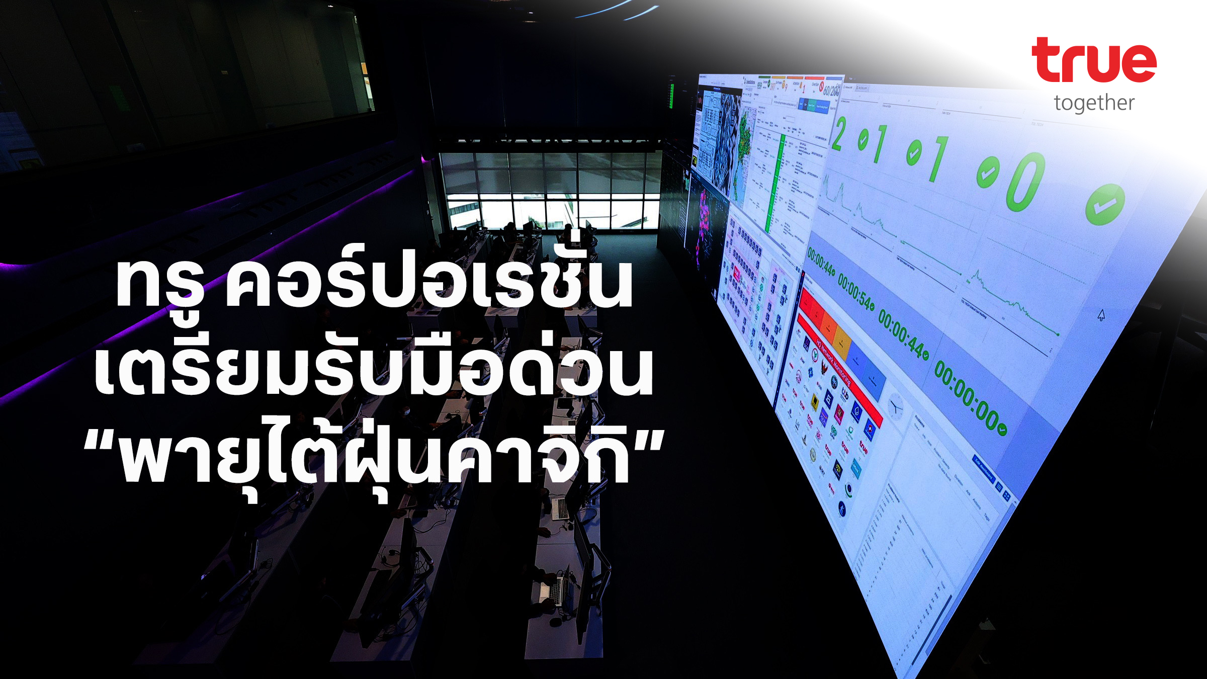 25 สิงหาคม 2568 – ทรู คอร์ปอเรชั่น จัดทีมเน็ตเวิร์กพร้อมตั้งวอร์รูม 24 ชั่วโมง วิเคราะห์ “พายุคาจิกิ” พร้อมปฏิบัติการด่วนรับมือดูแลการสื่อสาร จากที่กรมอุตุนิยมวิทยา คาดการณ์จะกระทบไทยทำให้ฝนตกหนักถึงหนักมาก ทีมทรูห่วงใยเกรงซ้ำรอยพายุวิภาที่กระทบไทยช่วงกรกฎาคมที่ผ่านมา ตั้งทีมวางแผนวิเคราะห์พร้อมดูแลการสื่อสารทั้งมือถือและเน็ตบ้านในหลายจังหวัดที่คาดว่าจะได้รับผลกระทบ โดยเฉพาะภาคเหนือและภาคตะวันออกเฉียงเหนือ จัดเตรียมเครื่องปั่นไฟ น้ำมันสำรอง ประจำสถานีฐานหลักป้องกันกรณีถูกตัดกระแสไฟฟ้าเพื่อความปลอดภัยของชุมชนกรณีน้ำท่วม พร้อมนำโครงนั่งร้านตั้งอุปกรณ์สูงพ้นแนวน้ำท่วม
