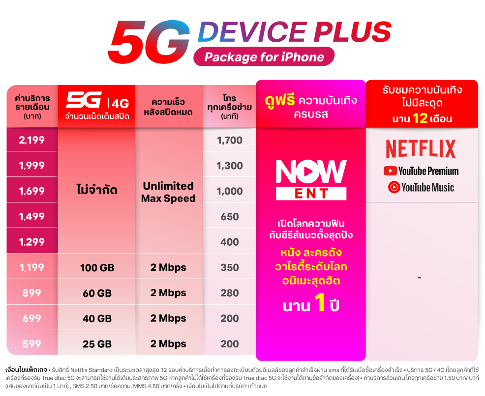 - Special offer! When upgrading to a monthly package starting form1,299 THB or above, get a discount on the device price based on usage time of up to 2,000THB