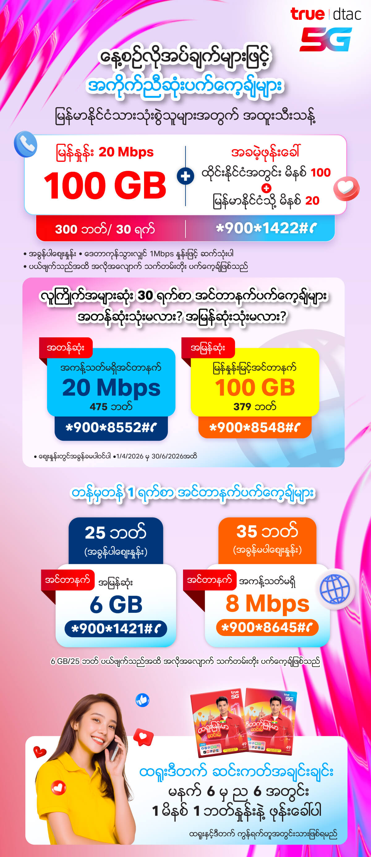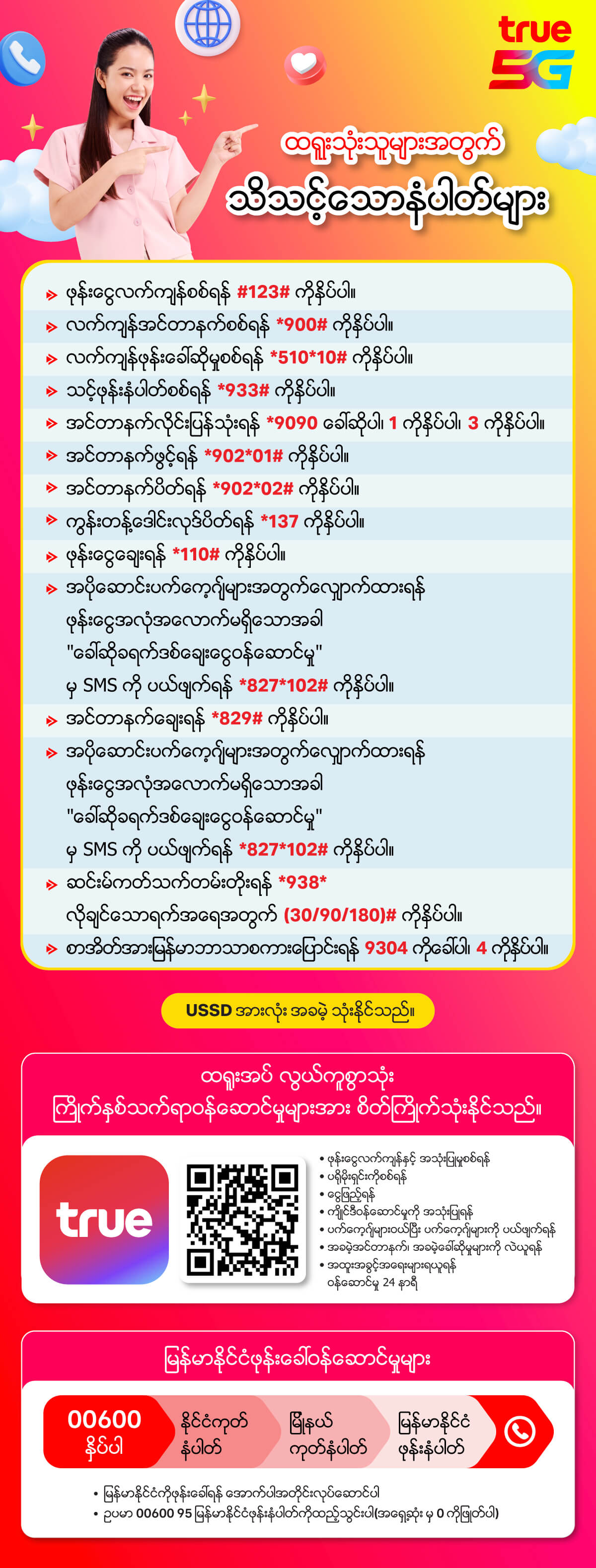 True 5G USSD ကုဒ်များ: ငွေစစ်၊ ဒေတာလျှောက် (မြန်မာ)
