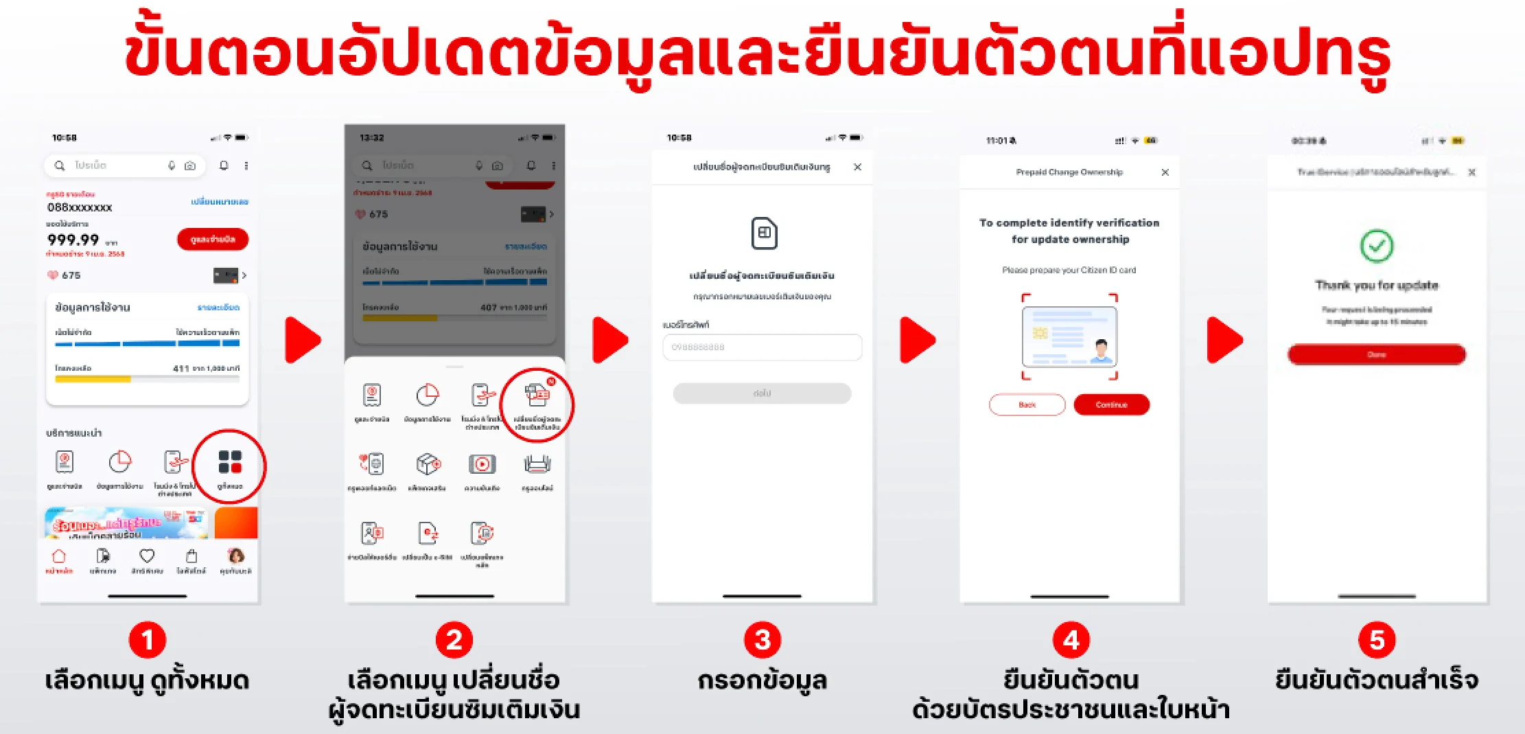 ขั้นตอนการอัปเดต ข้อมูลการลงทะเบียนของตัวท่านเองที่ ทรู แอป