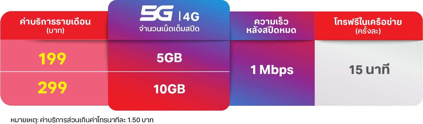 - ค่าบริการรายเดือน 199 บาท (ไม่รวมภาษีมูลค่าเพิ่ม)