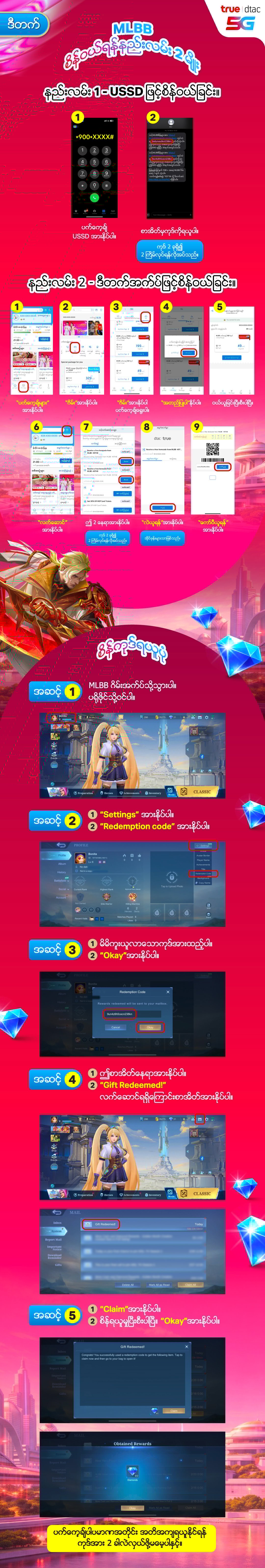 MLBB စိန်ဖြည့်နည်း True dtac သုံးစွဲသူများအတွက်