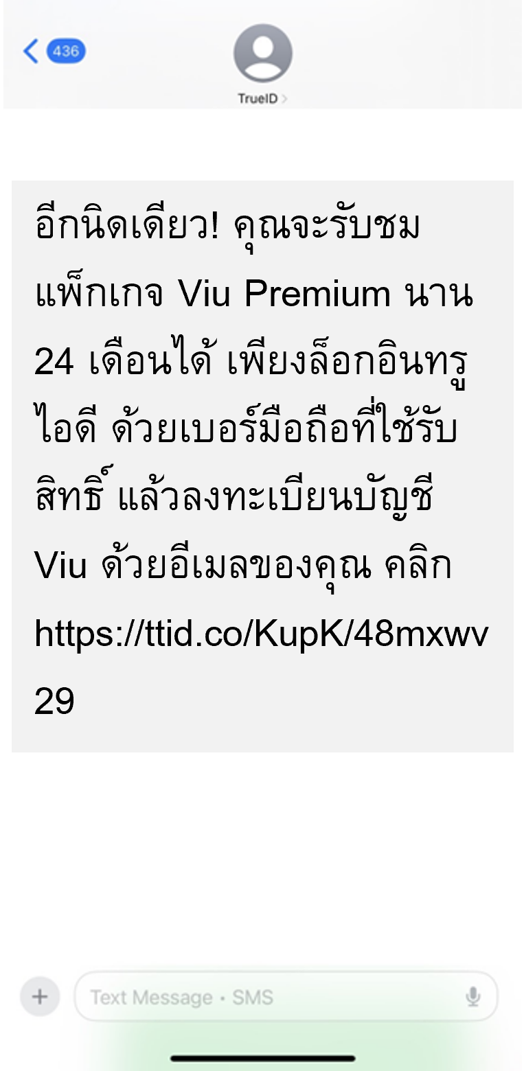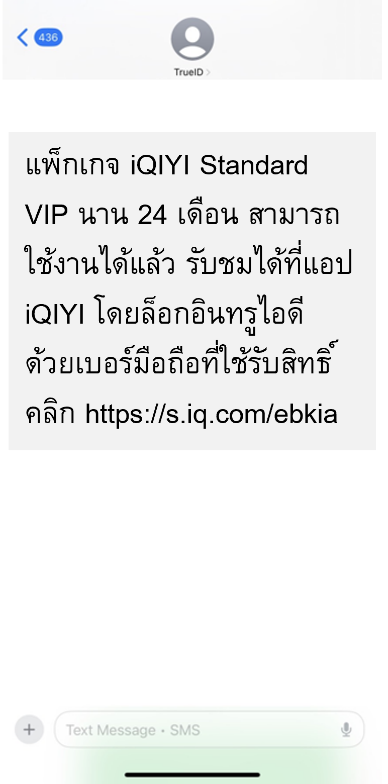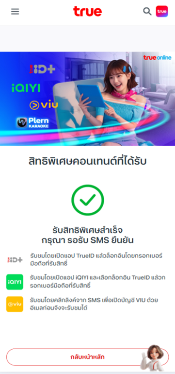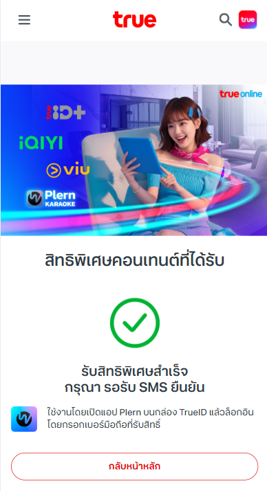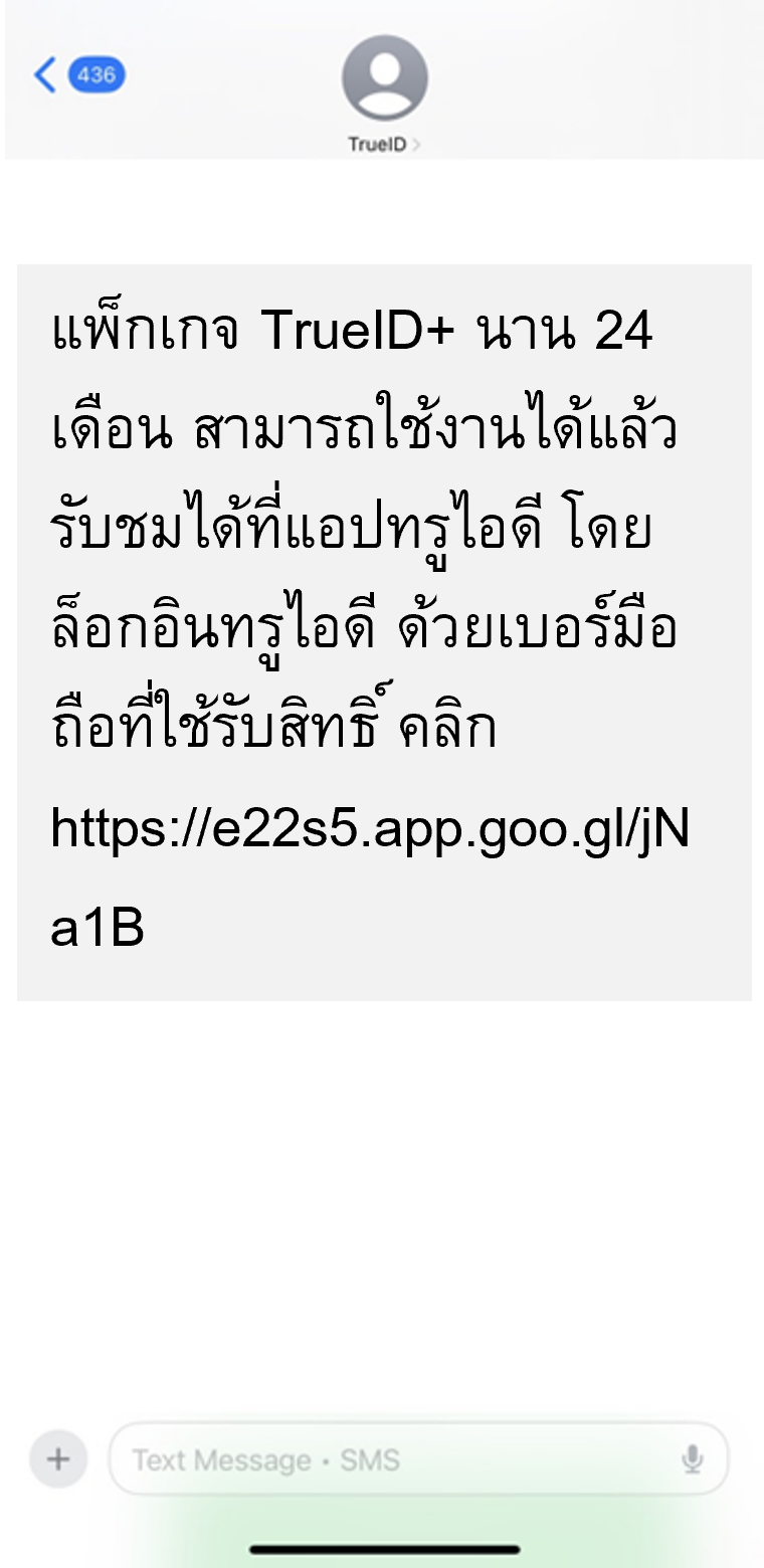 ได้รับ SMS ยืนยันจาก TrueID หลังรับสิทธิ์สำเร็จ