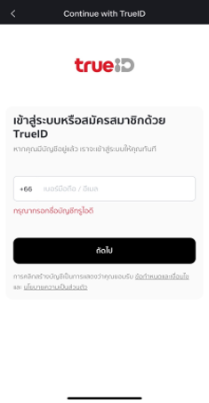 กรอกหมายเลขโทรศัพท์ที่ใช้เป็นเบอร์ติดต่อในการสมัครบริการทรูออนไลน์์