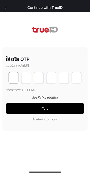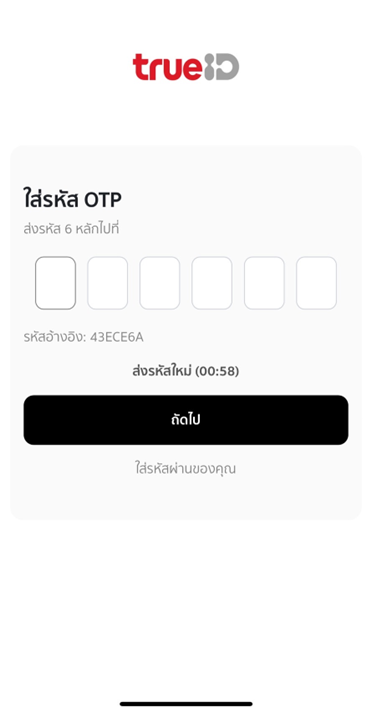 กรอกหมายเลข OTP ที่ได้รับจาก SMS