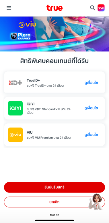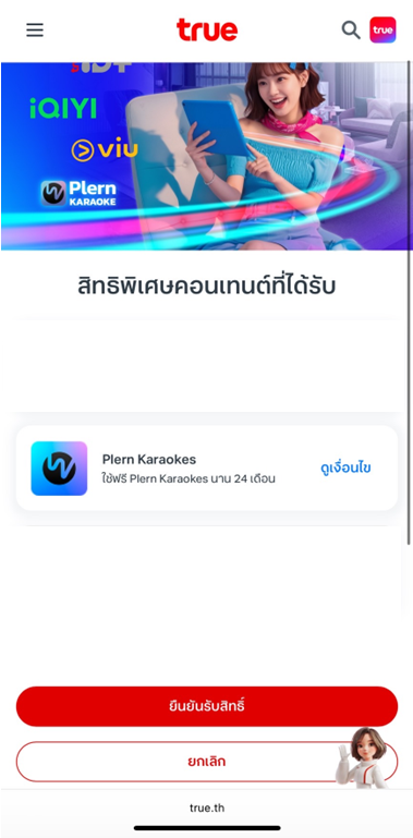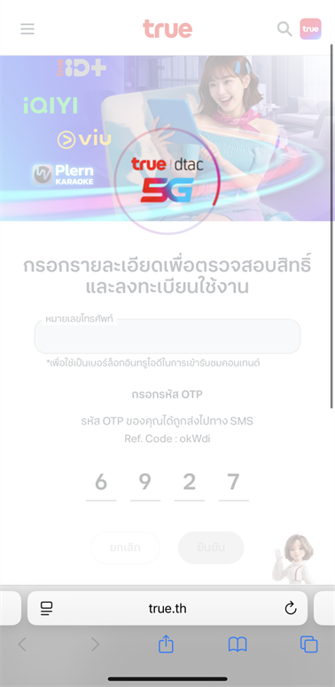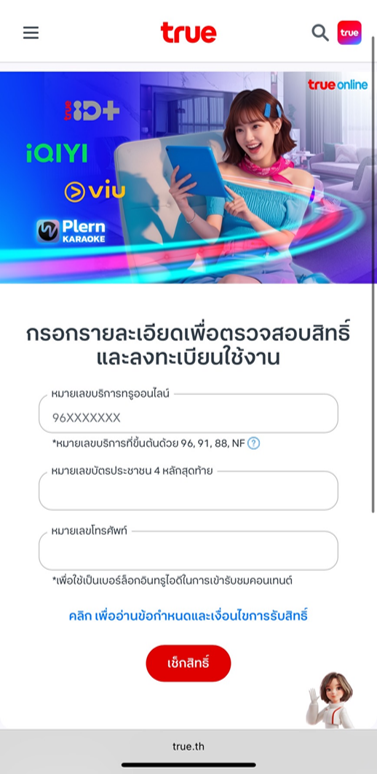 ไปที่ https://ss.true.th/s/coY0fog และกรอกข้อมูลเพื่อตรวจสอบสิทธิ์