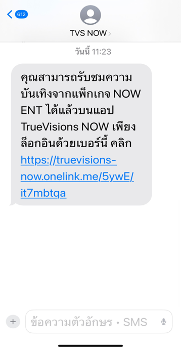 ได้รับ SMS ยืนยันจาก TVS Now หลังติดตั้งสำเร็จ