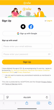 เลือกลงทะเบียนบัญชี Viu ด้วยวิธีที่ต้องการ