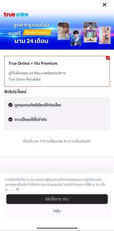 กดปุ่ม เปิดใช้งาน Viu (กรณี ไม่ขึ้นหน้านี้ ให้ไปที่เมนูบัญชีของฉัน > เลือก สมาชิกแพ็กเกจ > เลือก Viu Premium)