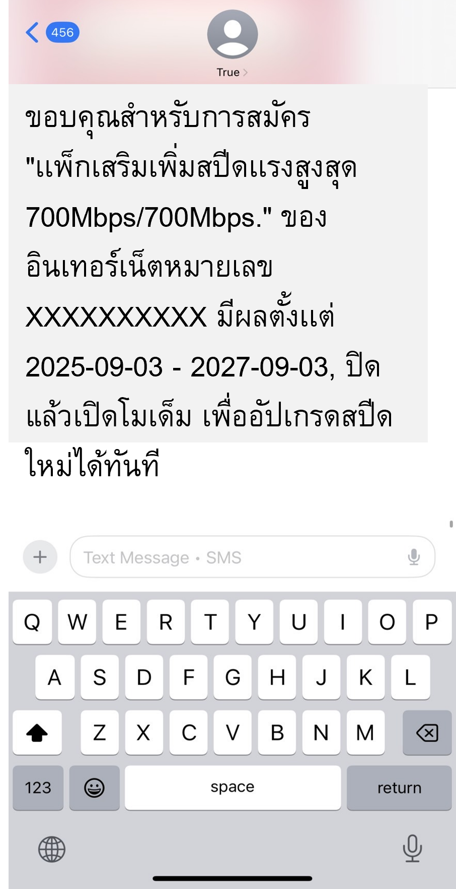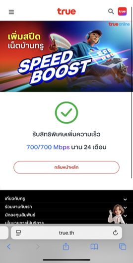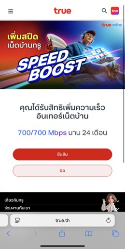 ได้รับ SMS ยืนยันจาก True หลังรับสิทธิ์สำเร็จ