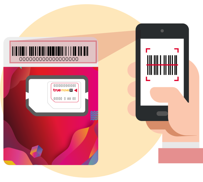 สแกนแถบบาร์โค้ด เพื่อเลือกเบอร์ และค่าบริการรายเดือนที่ต้องการสแกนแถบบาร์โค้ด เพื่อเลือกเบอร์ และบริการที่ต้องการScan barcode to select mobile number and price plan.